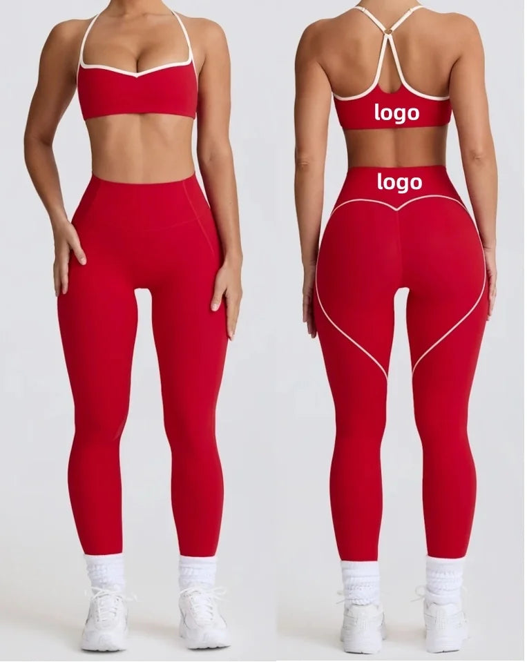 Custom Logo Contrast Color Heart Active Wear Gym Fitness Sets Women Workout Pilates Yoga Clothes Sportswear Suit