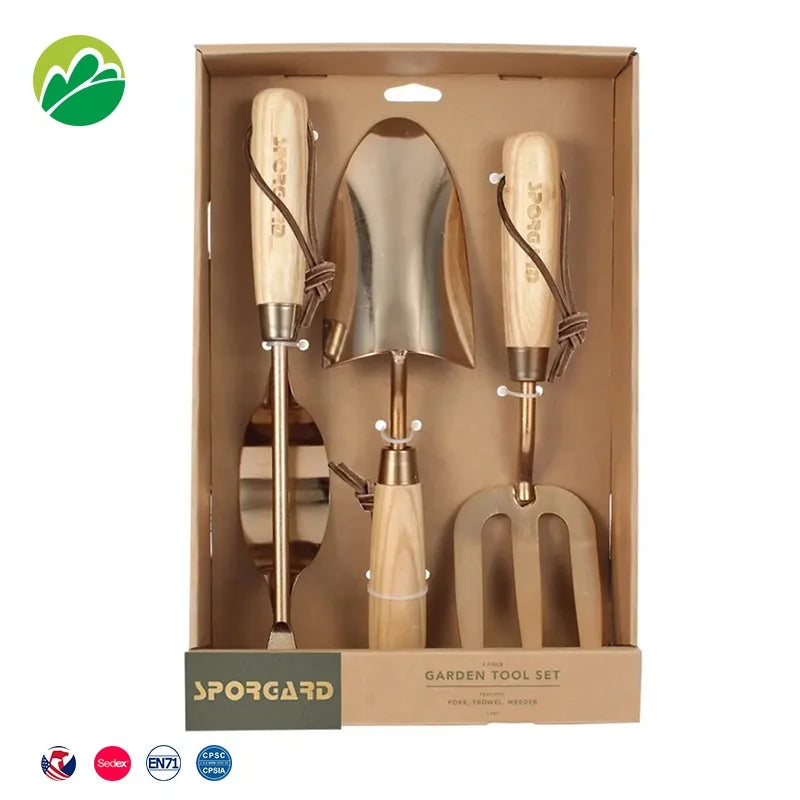 Gardening Tools Garden Hand Tools Set with Ash Wood Handle and Glossy Steel Head Weeder in a Gift Box