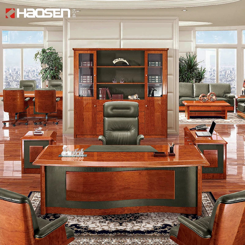 Modern Home Office Furniture Boss Ceo l Shaped Writing Executive Table with Drawers Cabinet Wood Leather Best Office Desk Chair