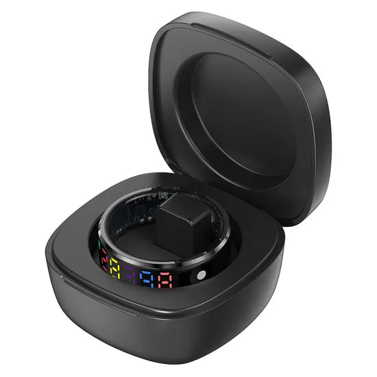 -R12 Smart Ring - 5ATM Waterproof, Sleep & Heart Rate Tracker, / Charging Case - Black, Size 9