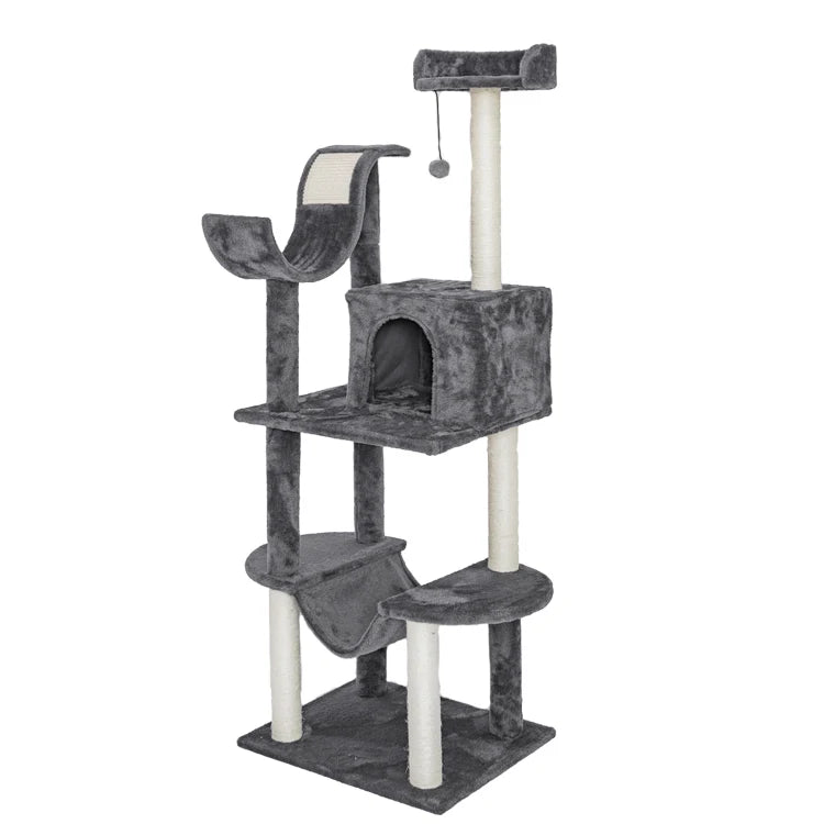 Scratcher Cat Post Tree With Toy Ball Custom Wooden Large Double Furniture Condo Cat Wood Tower Sisal Fabric for Cats D KING