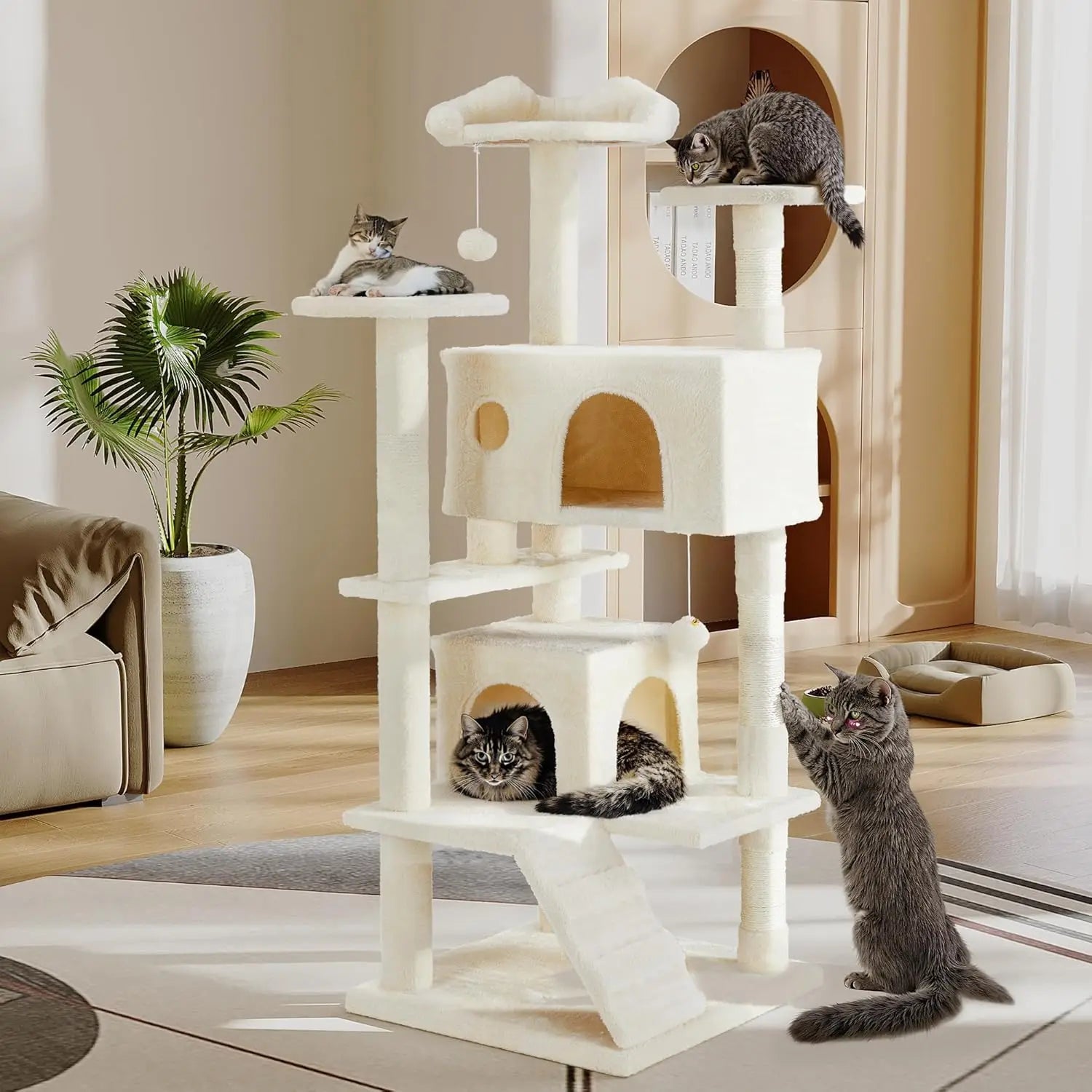 Wooden Cat Tower Cat Tree Tower Self Groomer Fully Scratching Post Removable Top Perch With Scratching Posts